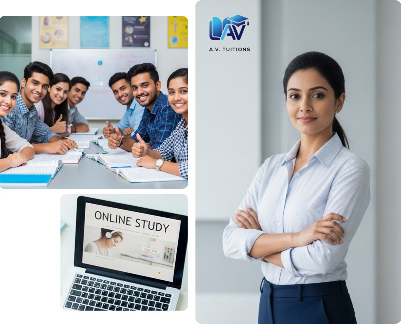 A.V Tuition offers quality education with strong concept clarity, personal attention, experienced teachers, exam-oriented methods, regular assessments, disciplined learning environment, doubt-solving support, confidence building, and consistent academic improvement for school students.